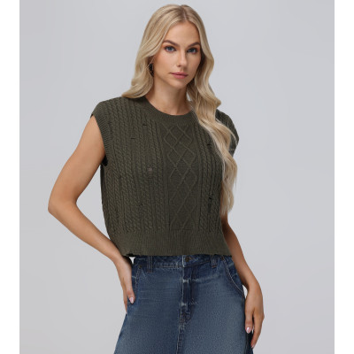 Distressed Cable Sweater Vest